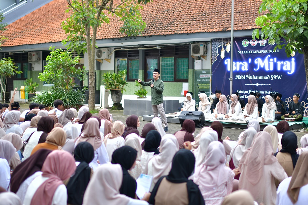Beliau menyampaikan bahwa peringatan Isra’ Mi’raj merupakan momentum penting untuk meneladani akhlak Nabi Muhammad SAW serta meningkatkan keimanan dan kedisiplinan siswa, khususnya dalam menjalankan salat lima waktu. Selain itu beliau juga menjelaskan makna peristiwa Isra’ Mi’raj serta hikmah di balik perintah salat bagi umat Islam. Para siswa tampak antusias dan menyimak ceramah dengan tertib.